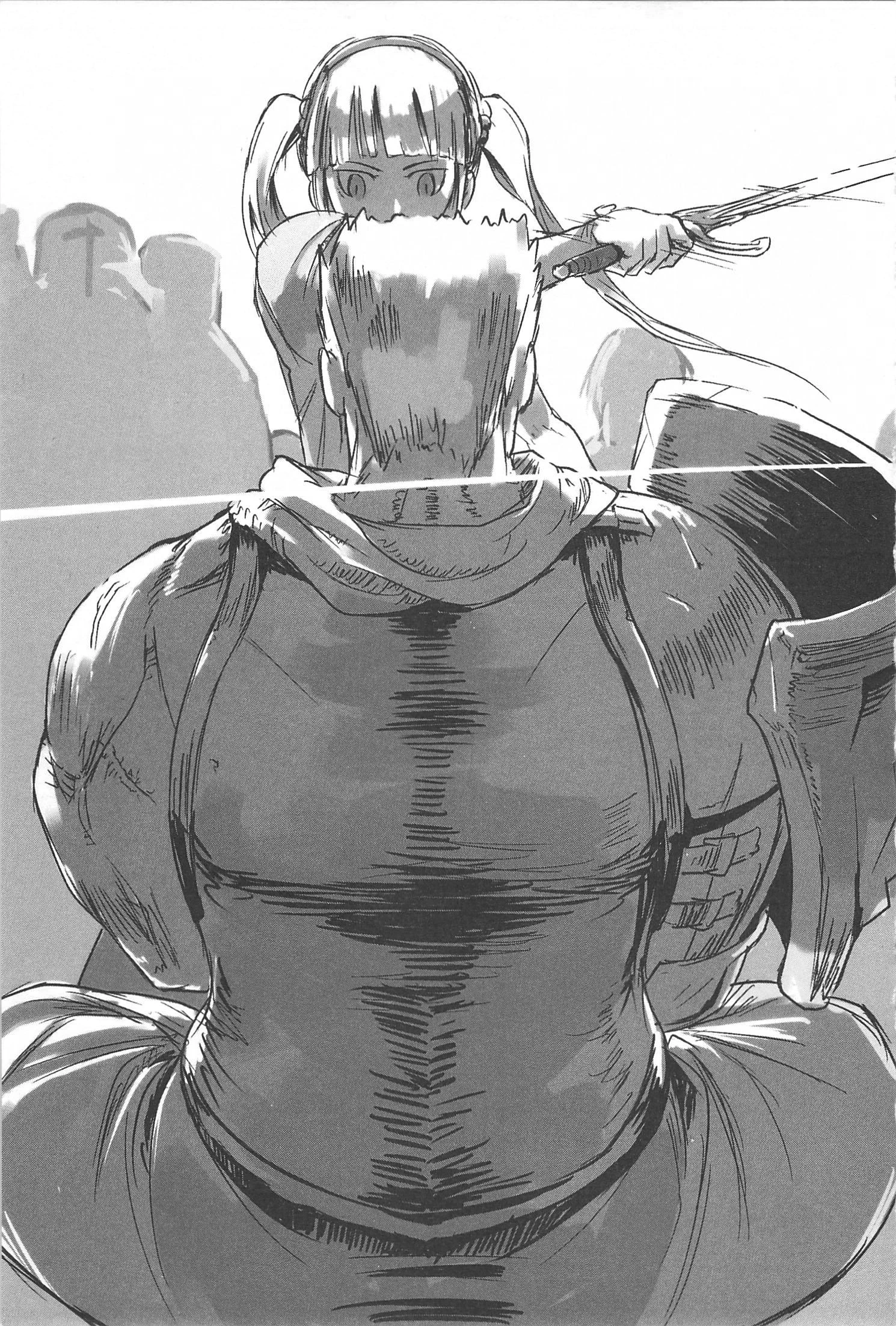 It was a splendid blow with the aim of cutting off his head. She was able to produce a clean swing from left to right, which I think was at least partially due to the training that I had been giving her. I'm sure that it would have been fatal under normal circumstances, with his severed head falling to the ground.